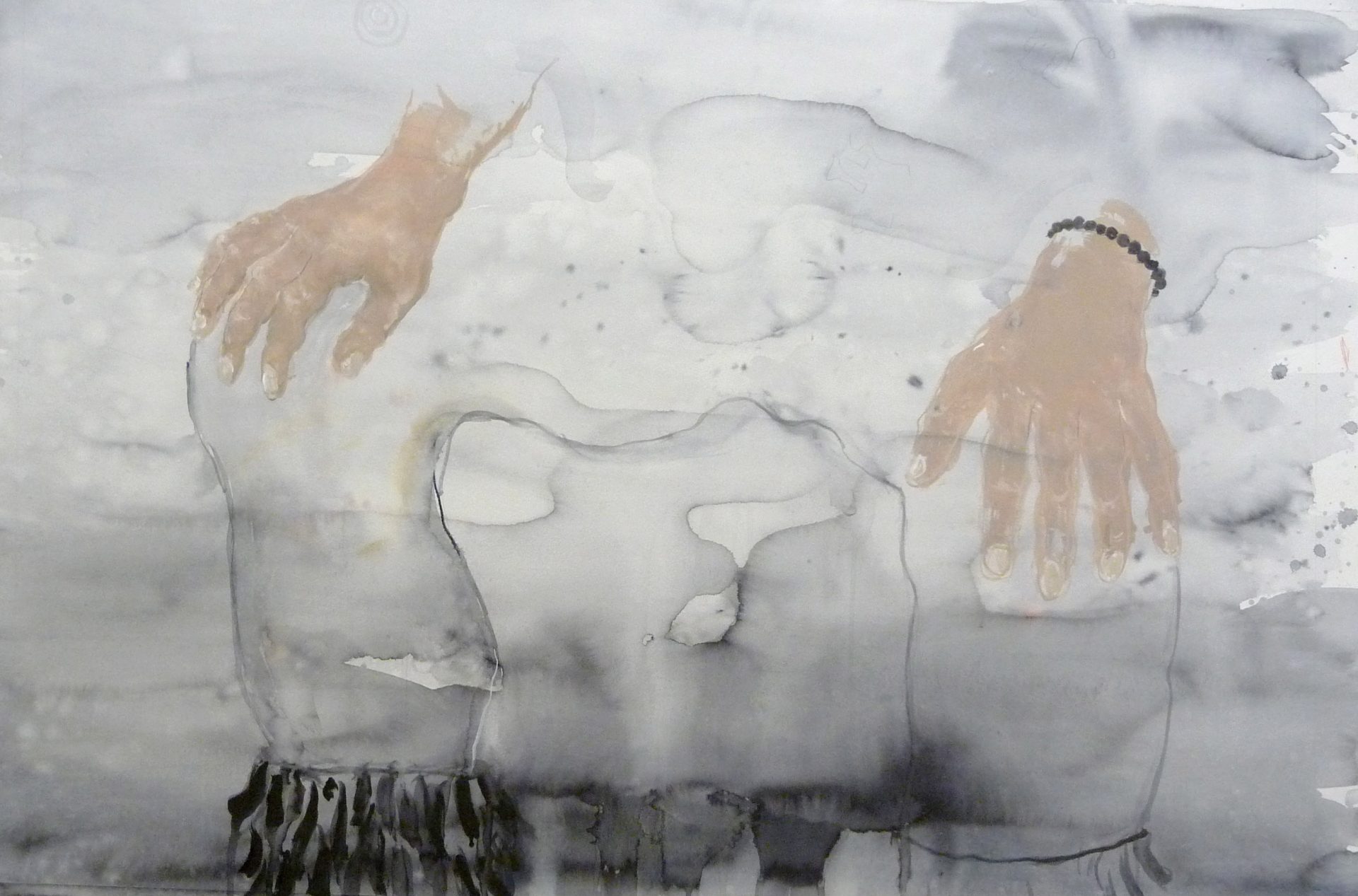 Bij onze eerste kennismaking in haar huis vielen me haar handen op, ik vond dat ze mooie handen heeft en zij is ook trots op haar handen, een goede start en ik heb er ook een werk over gemaakt.